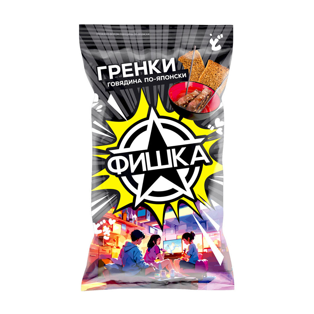 Погрузитесь в восточный колорит с гренками Фишка со вкусом говядины по-японски. Насыщенный мясной вкус деликатно дополнен нотами соевого соуса и пряных специй, характерных для японской кухни. Хрустящая текстура гренок создает приятный контраст с богатым и аппетитным ароматом. Это идеальная закуска для тех, кто ищет необычные и яркие вкусовые ощущения.
