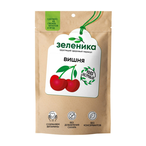 Идеальный выбор для быстрого и полезного перекуса — Зеленика Вишня. Удобный формат в 25 грамм подойдёт для школы, работы или активного отдыха. Отлично дополнит йогурт, кашу или мороженое, придав им яркий вишнёвый вкус.