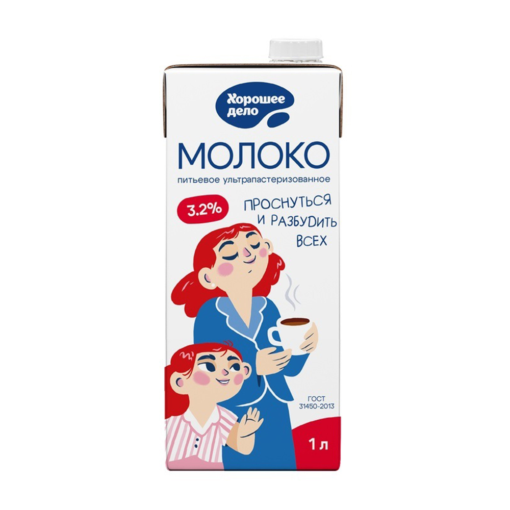 Хорошее дело — это отличный выбор для любителей натурального молока. Ультрапастеризация позволяет продлить срок годности, сохраняя его свежесть и питательные свойства. Молоко содержит 3,2% жира, что придает ему более насыщенный вкус и плотную текстуру.