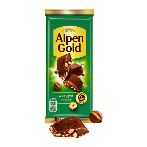 Молочный шоколад Alpen Gold с фундуком — отличный выбор для любителей сладкого. Нежный вкус и хрустящие орехи делают его идеальным дополнением к чашке кофе или чая. Прекрасно подходит для перекуса на работе или отдыха в свободное время. Откройте для себя удовольствие с Alpen Gold!