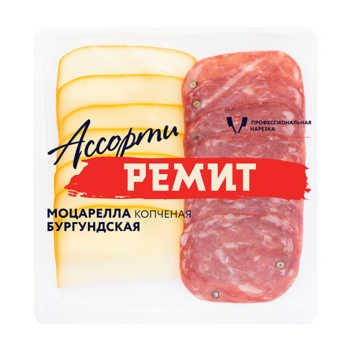 Сыр полутвердый «Моцарелла» копченый с массовой долей жира в сухом веществе 40% и мясное колбасное изделие сыровяленое полусухое, колбаса «Бургундская». СТО 51069329-016-2019 Состав: Сыр «Моцарелла» (молоко норм.. паст., соль, молокосв. фермент микробного происх., бактер. закваска термоф. и мезоф. микроорг.); Колбаса «Бургундская» (свинина, посолочно-нитритная смесь (соль, фикс. окр. нитрит натрия), молочный белок, растит. клетч. (пшен., цитрус.), лактоза, декстроза, мальтод., пряности (перцы (зеленый горошек, белый), горчица), усилители вкуса и аромата (глутамат натрия 1-зам., 5'-инозинат натрия 2-зам.), регулятор кислотн. пирофосфат натрия, антиокисл. (аскорбат и изоаскорбат натрия, аскорб. к-та, L-), аромат мяса, гемоглобин (свиной), краситель кармины, старт. культуры, консервант сорбат калия). Произв. на предприятии, где использ. орехи, сельдерей, соя, яйца.