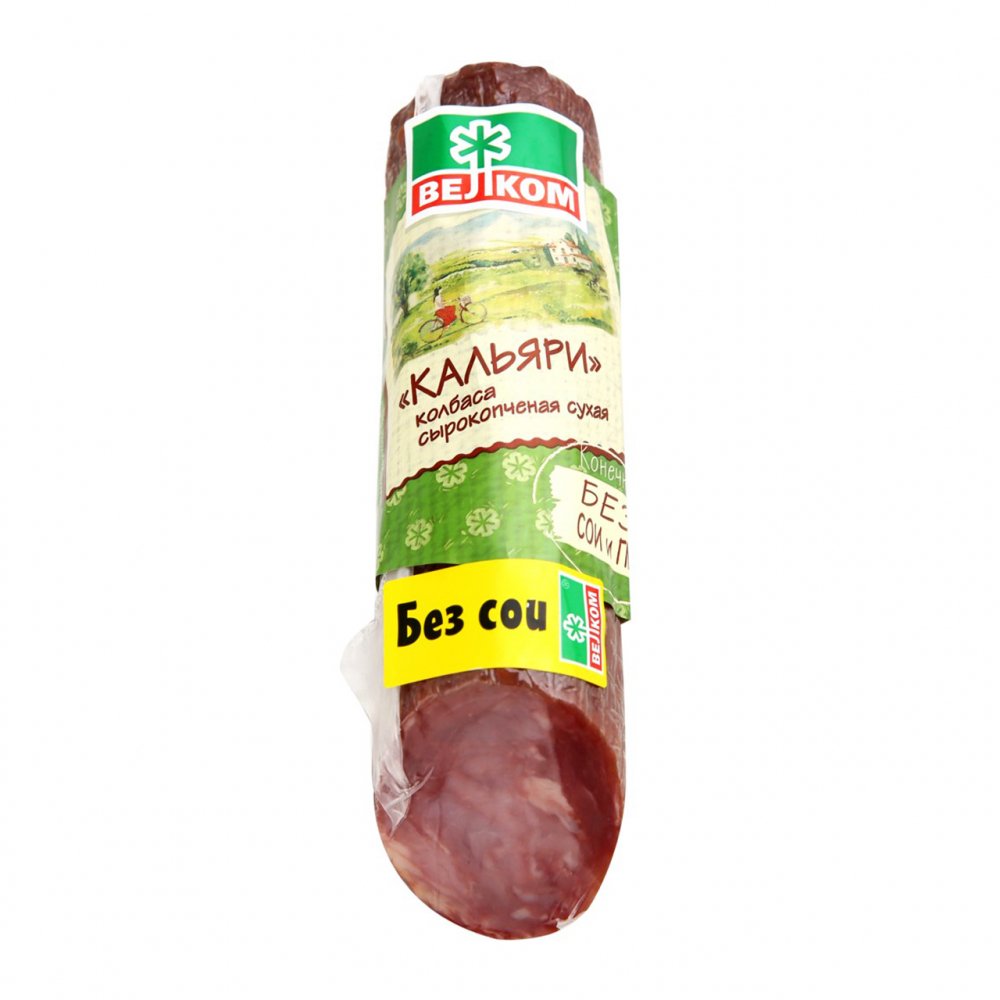 Свинина, говядина, мальтодекстрин, усилитель вкуса и аромата Е621, декстроза, чеснок, имбирь, экстракт перца, экстракт паприки, антиокислитель Е300, антиокислитель Е301, соль нитритная (соль, фикс. окраски нитрит натрия). На предприятии используются горчица, глютен, молоко, орехи, сельдерей, яйца и продукты их переработки.