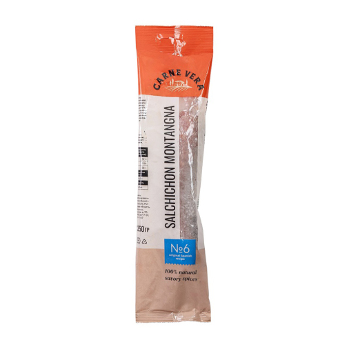 Сыровяленая колбаса Carne Vera Сальчичон Монтанья — идеальный выбор для ценителей мясных деликатесов. Обладает насыщенным вкусом и плотной текстурой. Прекрасно подходит для приготовления закусок, салатов и гастрономических композиций. Можно использовать для украшения праздничного стола или разнообразить повседневное меню.