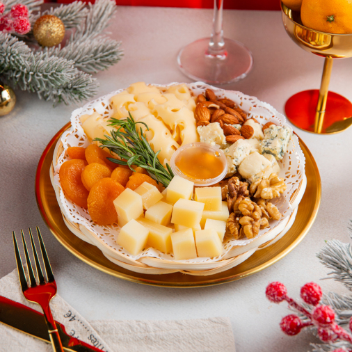 Сырное ассорти очень вкусное и выглядит красиво, но не было кураги, а в составе есть 🤷♀️