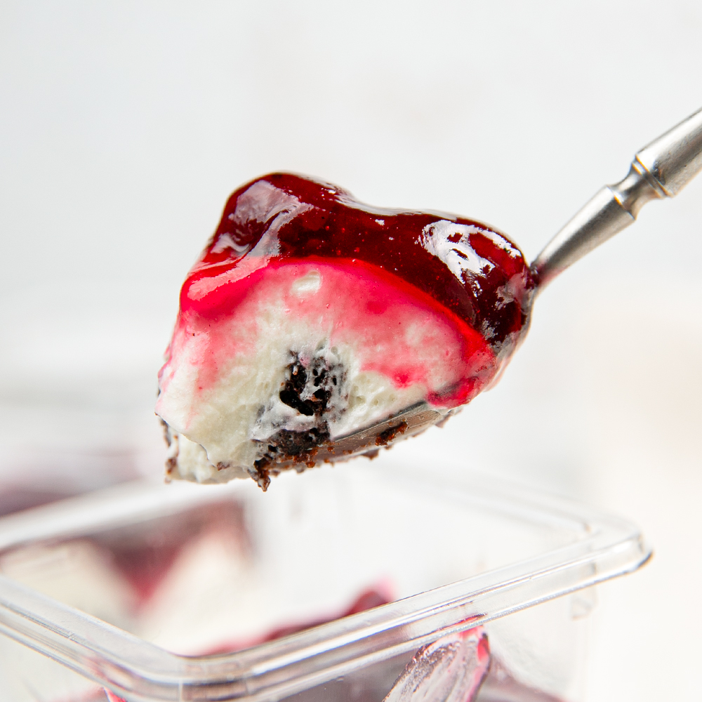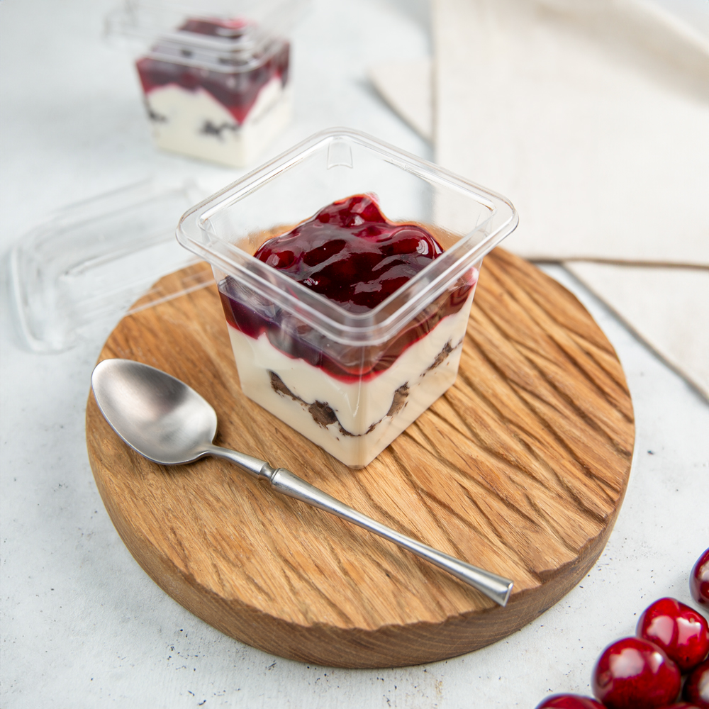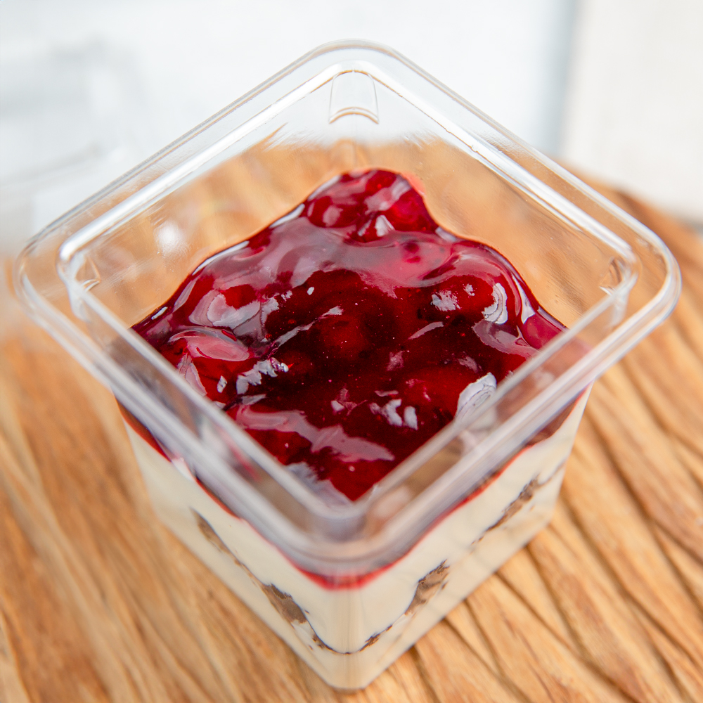 Начинка вишнёвая, сливки пастеризованные животные 33%, гель нейтральный, начинка йогурт, сметана 20%, какао, мука пшеничная, сахар, меланж, соль.