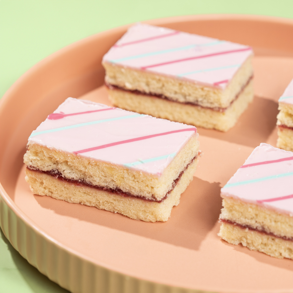 Попробовав это пирожное, невольно вспоминаешь детство. Кисловатый джем из брусники в прослойке, сладкая бело-розовая глазурь сверху и свежее, мягкое песочное тесто идеально сочетаются и обеспечат уютное ностальгическое чаепитие.