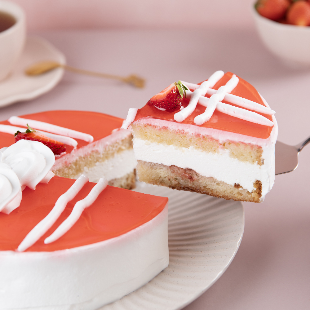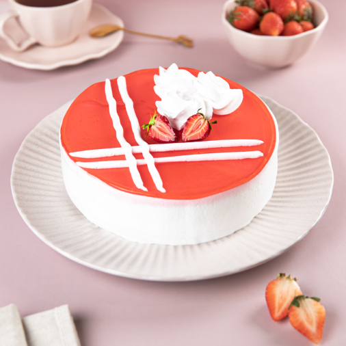 Очень нежное сочетание свежих сливок и клубники. Ярко-красный ягодный гляссаж и мягкий белый бисквит, пропитанный воздушным кремом. Колыбель вкуса раскрывается легкими сливочными нюансами с нотками игривой клубничной кислинки. Настоящее воплощение сладкой мечты на тонком бисквите.