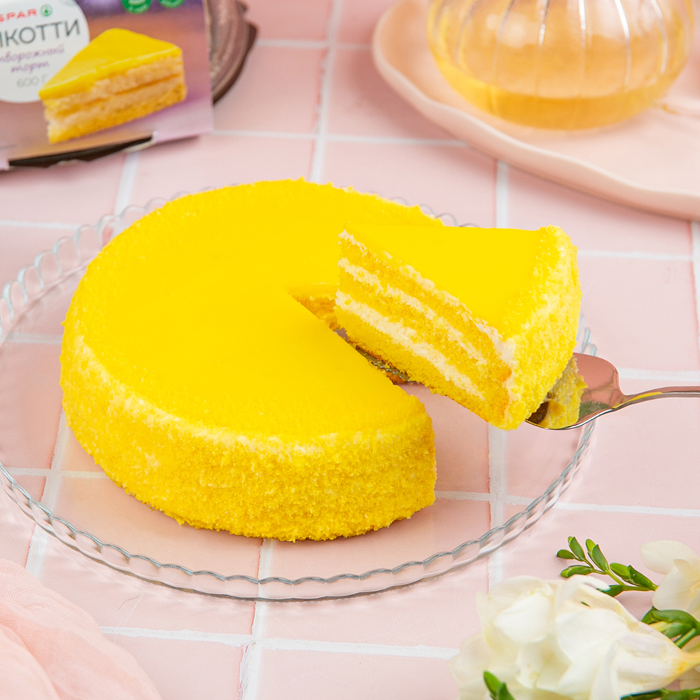 Нежные коржи с добавлением сочной лимонной цедры чередуются с кремом из классического творожного сыра Сернурская рикотта. Сверху торт равномерно покрыт глазурью. Десерт имеет характерный цитрусовый вкус и приятную свежую кислинку.
