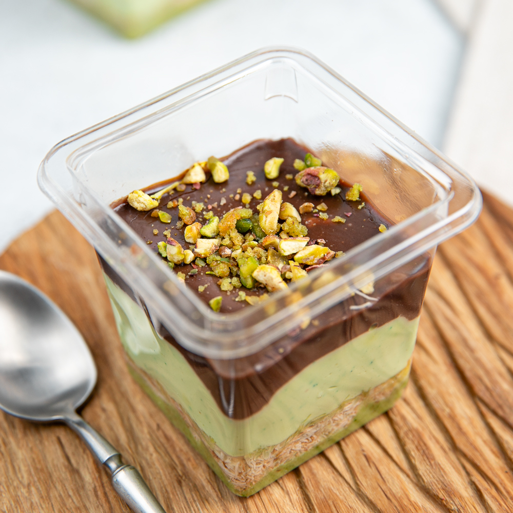 Сливки пастеризованные животные 33%, сыр мягкий творожный, сгущенное молоко, паста из фисташки, паста арахисовая, тесто катаифи (вода, мука, крахмал кукурузный, растительное масло, соль, лецитин, дрожжи хлебопекарные).