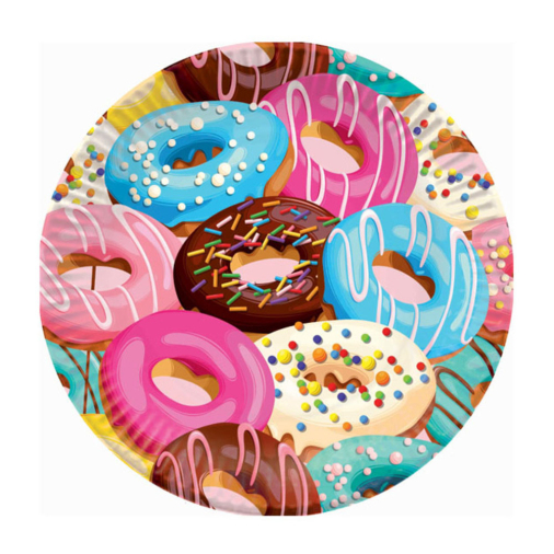 Одноразовая посуда – необходимый атрибут вечеринок. Яркие, веселые, красочные тарелки с изображением пончиков отлично подойдут для выездного мероприятия и очень понравятся как детям, так и взрослым. Станут идеальным дополнением к аналогичным стаканам.