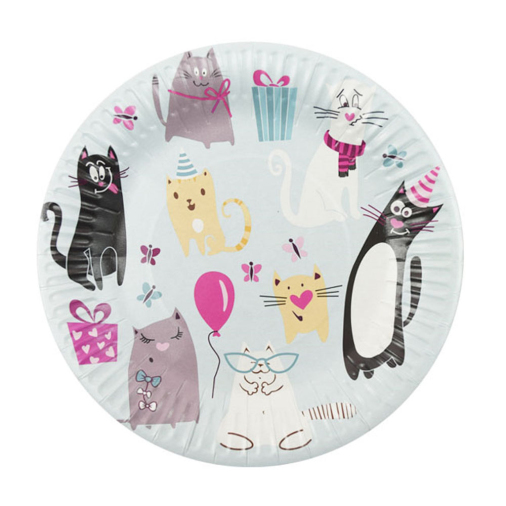 Одноразовая посуда – необходимый атрибут вечеринок. Яркие, веселые, милые тарелки с изображением очаровательных котиков отлично подойдут для выездного мероприятия и очень понравятся детям.