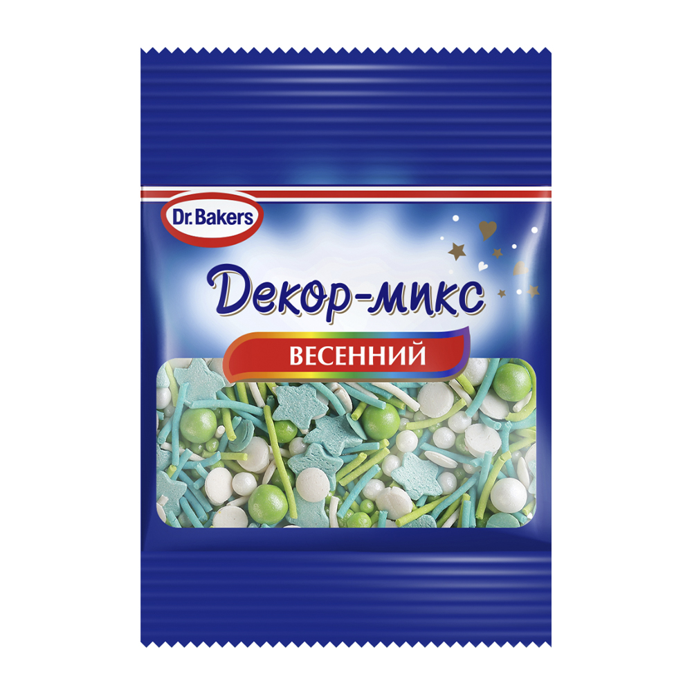 Сахарная посыпка ярких весенних цветов.В наборе палочки, шарики, звёздочки и конфетти. С таким декором ваш десерт точно не останется незамеченным! С новыми посыпками от Dr. Bakers процесс приготовления выпечки и декора станет еще более творческим и ярким!