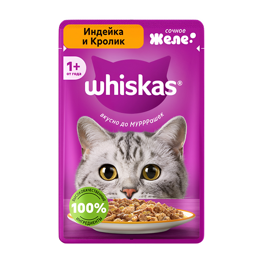 Для тех, кто хочет порадовать своего питомца вкусным и сытным блюдом, идеально подойдут паучи Whiskas . Нежное желе с индейкой и кроликом привлечёт даже самых привередливых кошек. Удобная упаковка позволит легко и быстро накормить вашего любимца в любое время.