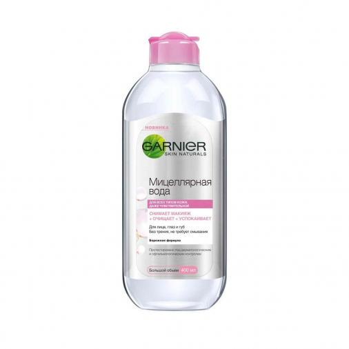 Если вы ищете эффективное, быстрое и комфортное средство для снятия макияжа, попробуйте Мицеллярную Воду от Garnier. Она эффективно снимает макияж, очищает кожу лица, заметно успокаивая даже чувствительную кожу. Формула Мицеллярной воды обогащена: Мицеллами, активными очищающими частицами, которые притягивают макияж и загрязнения как магнит, а затем легко удаляются при помощи ватного диска без лишнего трения. Глицерином растительного происхождения, активным компонентом, увлажняющим кожу.