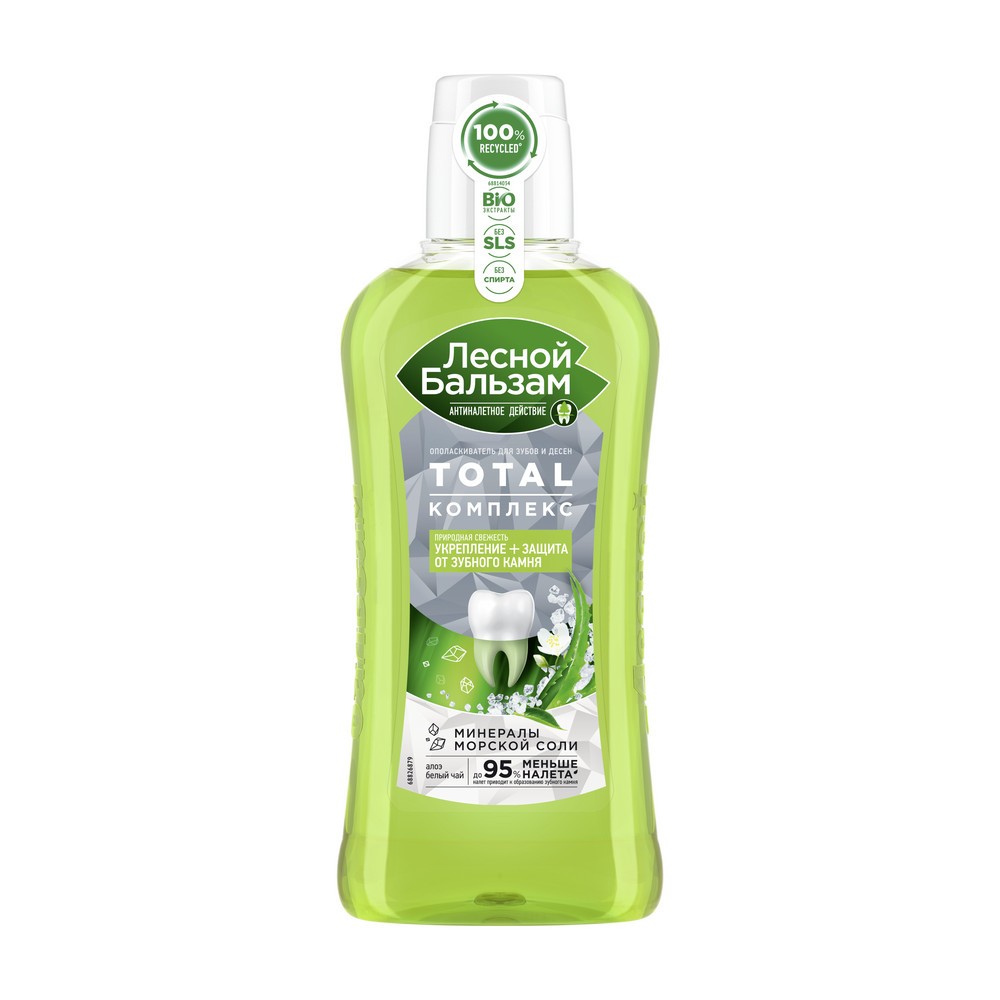Профилактический ополаскиватель для полости рта с экстрактами алоэ и белого чая имеет самый мягкий вкус в линейке ополаскивателей Лесной бальзам и сочетает в себе сразу 3 действия: 1. Укрепляет десны, нормализует обменные процессы в мягких тканях полости рта благодаря запатентованной формуле. 2. Защищает от кариеса и укрепляет эмаль за счет минерального комплекса с фтором. 3. Сохраняет дыхание свежим и защищает от образования налета в течение дня.