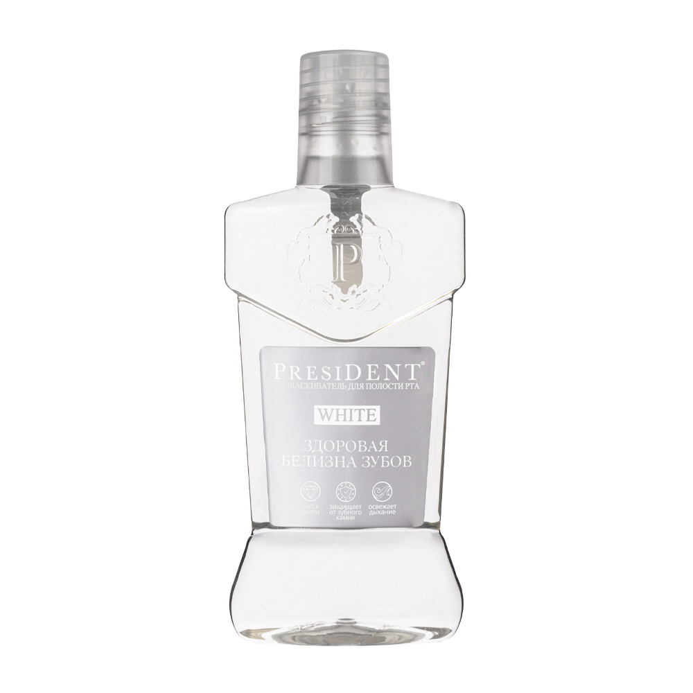 Ополаскиватель President Здоровая белизна зубов — идеальное решение для тех, кто хочет сохранить здоровье полости рта и естественную белизну зубов. Подходит для ежедневного использования. Помогает поддерживать гигиену и свежесть дыхания. Незаменим при уходе за полостью рта после еды или чистки зубов.