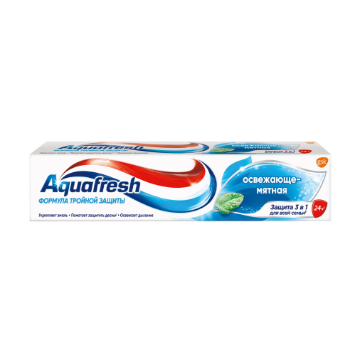 Зубная паста Aquafresh освежающе-мятная — идеальный выбор для тех, кто хочет сохранить здоровье зубов и свежесть дыхания. Паста помогает эффективно очищать зубы и защищать эмаль. Её приятный вкус делает процесс чистки более комфортным. Подходит для ежедневного использования.