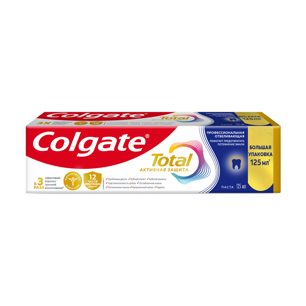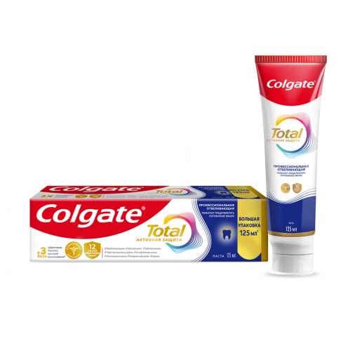 Зубная паста «Colgate» Total 12 отбеливающая – это эффективное средство для ежедневного ухода за полостью рта. Она помогает бороться с потемнениями на эмали и обеспечивает надёжную защиту от кариеса и зубного налёта. Подходит для тех, кто хочет сохранить белизну зубов и здоровье дёсен.