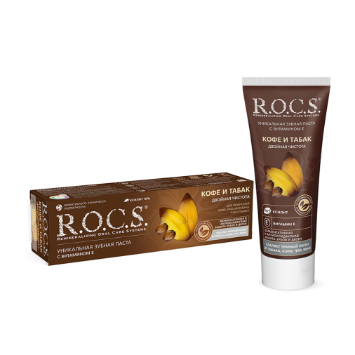 Зубная паста R.O.C.S. Кофе и табак — отличное решение для тех, кто хочет сохранить здоровье зубов и свежесть дыхания. Паста помогает бережно очищать эмаль, удаляя налет, который может образоваться от кофе и табака. Она подходит для ежедневного использования. Регулярное применение способствует улучшению состояния полости рта.