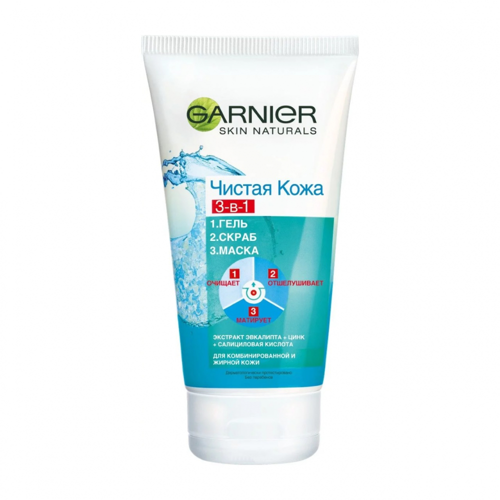 Крем-скраб-маска Garnier Чистая кожа 3 в 1 — это универсальное средство для борьбы с несовершенствами кожи. Оно глубоко очищает поры, матирует и выравнивает цвет лица. Подходит для жирной и комбинированной кожи, может использоваться как скраб или маска.