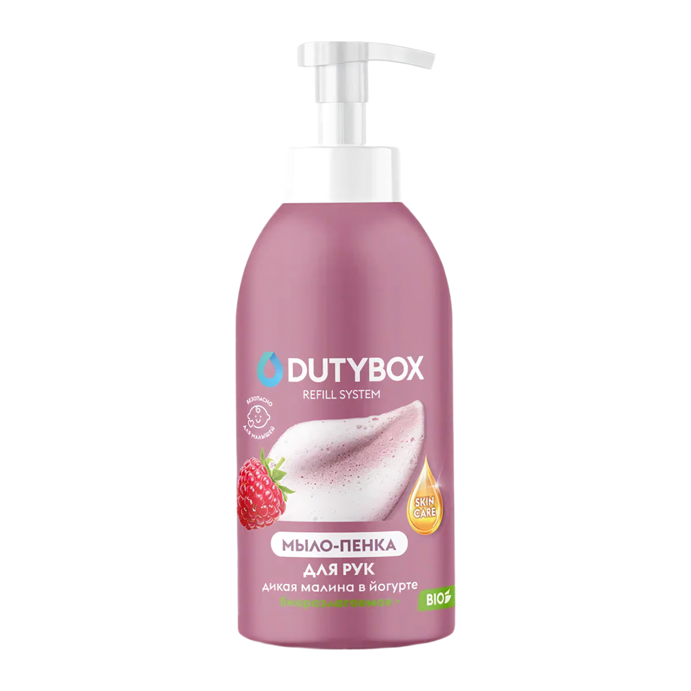 Мыло-пенка DutyBox для рук Дикая малина в йогурте — идеальное средство для мягкого очищения кожи. Подходит для ежедневного использования. Легко превращается в нежную пену, эффективно удаляет загрязнения. Обладает приятным ароматом, оставляет ощущение свежести и комфорта. Прекрасно подходит для использования на кухне или в ванной комнате.