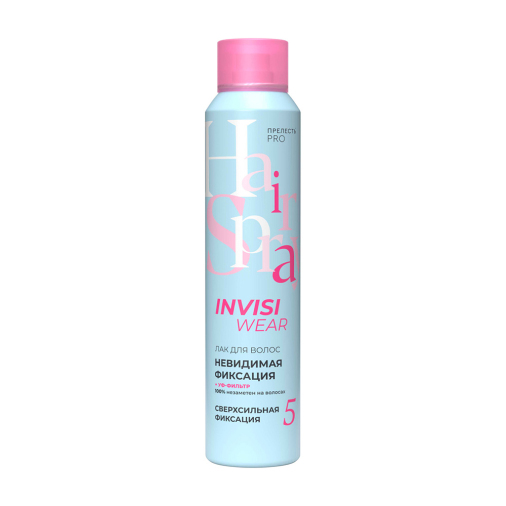 Лак для волос Прелесть Pro Invisiwear сильной фиксации 300мл помогает создать и сохранить причёску на весь день. Он подходит для всех типов волос и обеспечивает надёжную фиксацию без склеивания и утяжеления. Идеален для создания как повседневных, так и вечерних причёсок. Легко наносится и не оставляет следов на одежде.