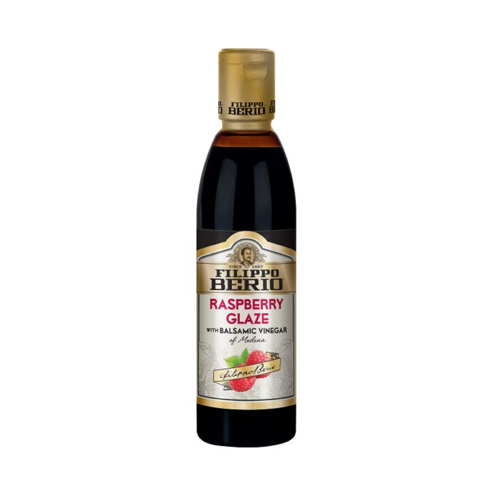Бальзамический уксус из Модены 60%, винный уксус (вино*), концентрированное виноградное сусло, краситель E150d, концентрированный виноградный сок, крахмальная патока, малиновый сок 15%, модифицированный кукурузный крахмал, декстринмальтоза, глюкоза, загуститель: ксантановая камедь, натуральный ароматизатор малины.