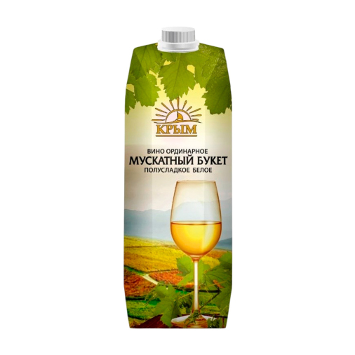 Произведено из белых сортов винограда Ркацители, Рислинг, Cовиньон, Алиготе,Шардоне, Мускат. Вино наливом (виноматериал),сусло виноградное концентрированное, пищевая добавка: антиокислитель - диоксид серы.