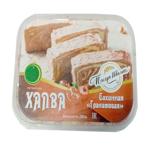 Сахар песок, тахинная паста, вода, мыльный корень, лимонная кислота, эмульгатор Е471, ароматизатор гранат.