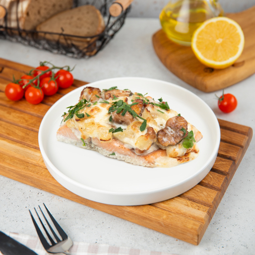 Нежное филе горбуши в сочетании с ароматными вешенками создаёт изысканное блюдо, которое покорит вас с первого кусочка. Сочные грибы, репчатый лук и расплавленный сыр моцарелла переплетаются в неповторимую гармонию вкусов. Порадуйте себя и своих близких великолепным блюдом!