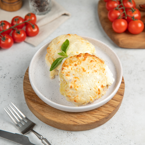Филе куриное, картофель, лук репчатый, батон, майонез(масло подсолнечное, вода, уксус, яйцо, ксантановая и гуаровая камедь, соль, крахмал кукурузный модифицированный, сорбиновая кислота, ароматизатор горчица, подсластитель сладин, бета-каротин содержит источник фенилаланина)сыр(пастеризованное молоко, молочная кислота, соль, молокосвертывающий фермент СГ50,уплотнитель хлорид кальция, консервант нитрат натрия),масло подсолнечное, соль, перец черный.