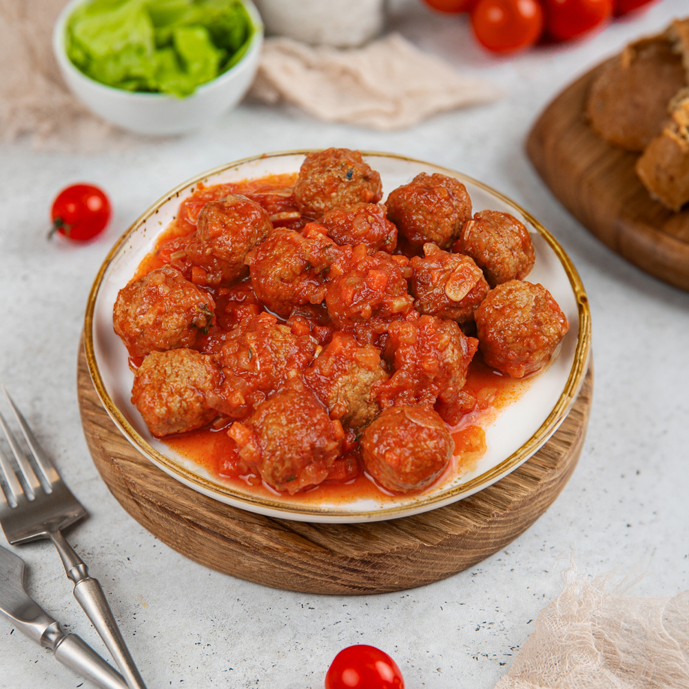 Фрикадельки в томатном соусе — идеальное решение для быстрого и сытного обеда или ужина. Сочные фрикадельки с насыщенным вкусом прекрасно сочетаются с любым гарниром: рисом, макаронами или картофельным пюре. Легко приготовить: просто разогрейте и подавайте к столу.