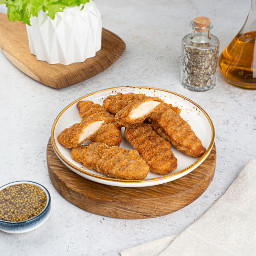 Сочные стрипсы в хрустящей панировке придутся по вкусу всем! Нежные кусочки куриного филе, обжаренные до золотистой корочки, станут отличным решением для обеда, ужина или перекуса в течение дня. Чудесно сочетаются с различными соусами, гарнирами и салатами.