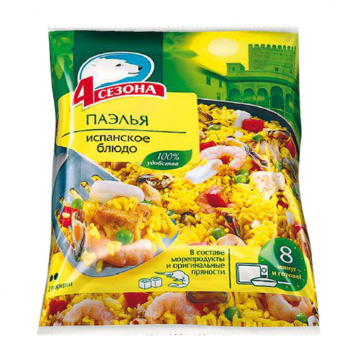 Испанское блюдо с морепродуктами — идеальный выбор для любителей кулинарных экспериментов. Продукт готов к употреблению, нужно только разморозить и добавить в выбранное вами блюдо. Паэлья отлично подойдёт для создания яркого ужина в средиземноморском стиле.