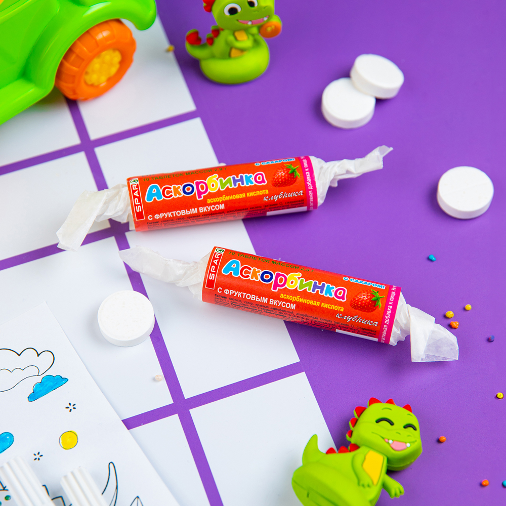 Хотите добавить ярких вкусовых ощущений и поднять настроение? Попробуйте аскорбинку со вкусом клубники от SPAR! Эти витаминки станут отличным дополнением к рациону и помогут поддерживать здоровье. Они идеально подойдут для перекуса в дороге, на работе или дома.