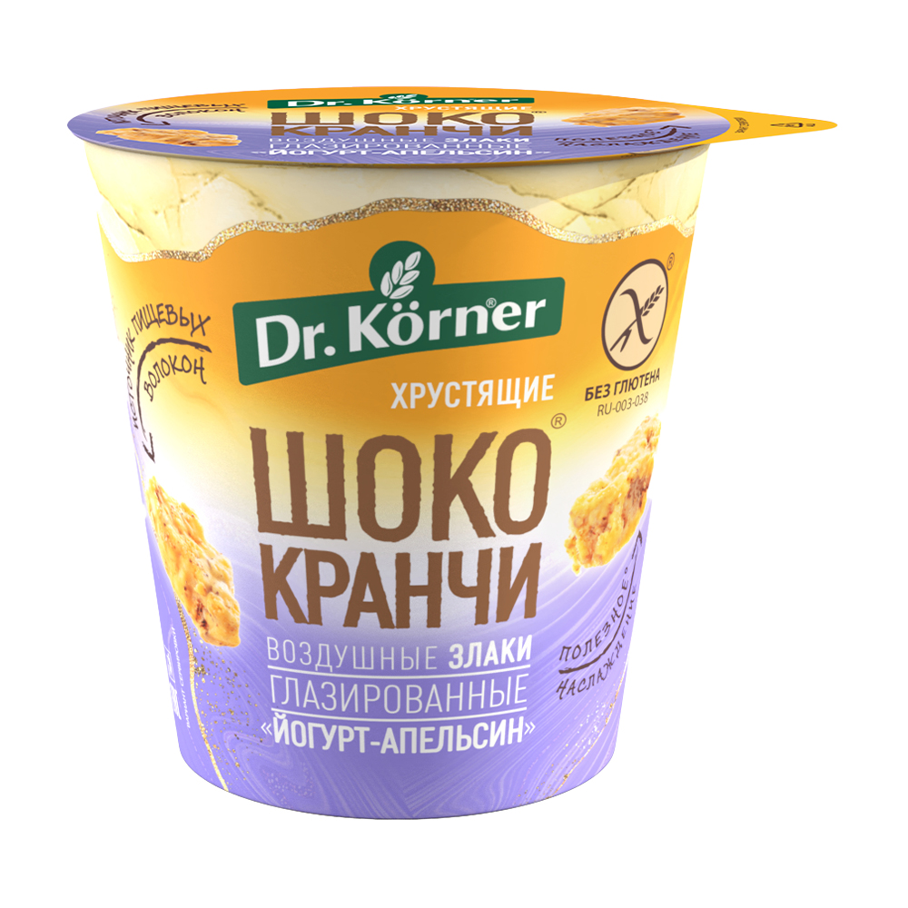 Глазурь кондитерская «Апельсиновая с йогуртом» (сахар, заменитель масла какао нетемперируемый лауринового типа ( гидрогенизированное фракционированное пальмоядровое масло, эмульгаторы: лецитины, фосфатиды; сорбитан тристеарат), молоко сухое обезжиренное, сыворотка сухая молочная, йогурт сухой обезжиренный, порошок фруктово-ягодный апельсин, эмульгатор: соевый лецитин, ароматизаторы натуральные, регулятор кислотности: лимонная кислота, красители: экстракт паприки, капсантин, капсорубин; каротины); крупа гречневая ядрица, смесь витаминно-минеральная (В1, В2, В6, РР, фолиевая кислота, железо).