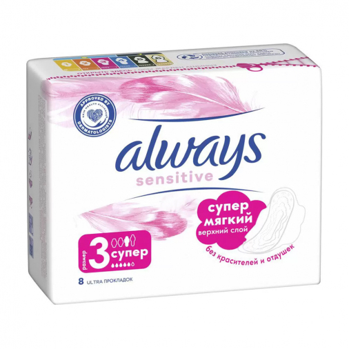 Гигиенические прокладки Always Ultra Sensitive Super обеспечивают комфорт и уверенность. Они подходят для очень интенсивных выделений, надёжно крепятся к белью, отлично впитывают и блокируют неприятные запахи. Супертонкие и гибкие, дарят ощущение комфорта и свежести.