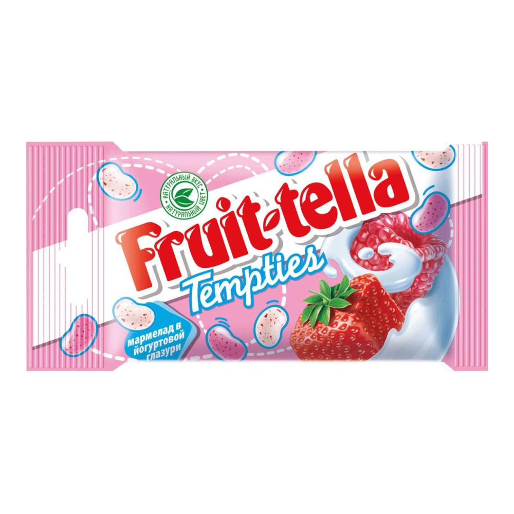 Сахар, глюкозный сироп, сухое обезжиренное молоко, сухая молочная сыворотка, молочный жир, йогуртовый порошок, желатин, агент желирующий (пектины), соки из ягод (клубничный, малиновый), регуляторы кислотности (молочная кислота, лимонная кислота), натуральные ароматизаторы, концентрированный сок черной моркови, экстракт красной капусты, кукурузный крахмал, растительные масла, загустители (гуммиарабик, Е1450, крахмал окисленный), краситель (кармины), глазирователи (шеллак, изомальт), эмульгаторы (лецитины, Е476), консервант (Е202), антиокислитель (Е306).
